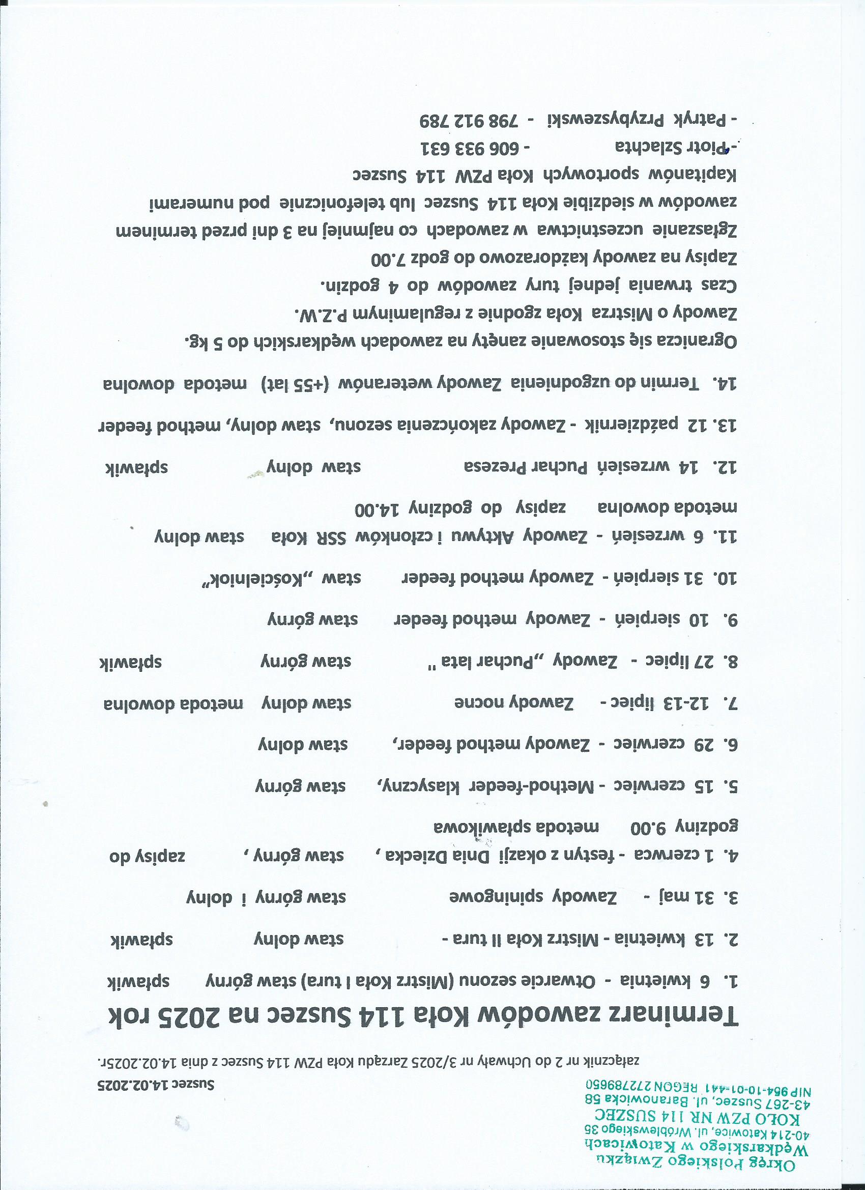 Spławikowe zawody „WIOSNA” 2026 r.